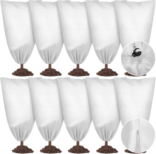 10 cubiertas para plantas, protección contra congelación, cubierta de invierno para plantas con cordón y cremallera, bolsa protectora grande para