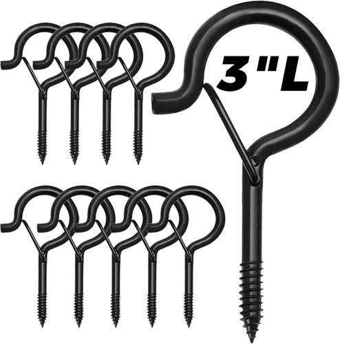 Percha Q grande: el tamaño ampliado es de 3 pulgadas y tiene una apertura más grande para colgar más fácilmente. Adecuado para luces de exterior, luces de patio, luces de Navidad, plantas, comederos de pájaros y casas, postes de flores, campanillas de viento, etc. Diseño de hebilla de seguridad: la hebilla de seguridad es fácil de instalar y liberar, y protege los artículos colgantes de caídas incluso con vientos fuertes. Fuerte y resistente: el colgador Q está hecho de metal de alta calidad y tiene un revestimiento resistente al óxido para uso en interiores y exteriores y puede soportar hasta 40 libras. Fácil de usar: gancho de tornillo, fácil de instalar en madera, o con tubo de expansión, perfecto para patio, terraza, techo, árbol, valla, etc. Compra ahora y deja que nuestros productos agreguen un toque de color a tu vida. Si tienes alguna pregunta, ponte en contacto con nosotros a tiempo.