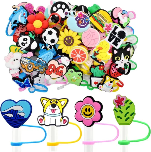 Temática aleatoria diferente: recibirás 100 tapas para pajitas de diferentes temas de 9-10 mm / 0,4 pulgadas. Lindas y brillantes. Sin duplicados y amplia selección. Siempre podrás encontrar una que te guste Divertido y Práctico: Con sus diseños únicos y atractivos, estas tapas para pajitas no solo previenen derrames y protegen de la entrada de suciedad, insectos y moscas, sino que también hacen que tus vasos y pajitas sean más interesantes y adorables Cantidad suficiente y amplia variedad: puedes cambiar las fundas de tus pajitas en diferentes estilos según tus preferencias y diferentes ocasiones. También puedes compartir con tus amigos y familiares. Perfecto para varias fiestas temáticas Durable y Reutilizable: Hecho de buen PVC. Seguro, no tóxico y ecológico. Resistente y duradero. Fácil de limpiar. A prueba de polvo y salpicaduras. Nota: Nuestra funda para pajitas es adecuada para todo tipo de pajitas de 9-10mm Servicio postventa tranquilizador: si no está completamente satisfecho con nuestros productos, simplemente contáctenos. Le proporcionaremos la mejor resolución