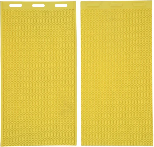 Característica: 1. Adecuado para hacer láminas de cera de abejas y prensado manual de base de cera de abejas. 2. El patrón elevado también se puede utilizar para presionar el patrón de peine de otros productos. 3. Usando material de goma suave, buena dureza, durabilidad y resistencia a la abrasión. 4. Tamaño pequeño, peso ligero, plegable (no se puede colocar bajo presión pesada), fácil de transportar y almacenar, cómodo de usar. 5. La prensa manual de peine es un excelente accesorio de apicultura. Especificaciones: Tipo de artículo: Prensa de cera de abejas Material: Caucho Color: amarillo Peso: aprox. 20.5 onzas. Tamaño del producto: aprox. 16.5 x 9.1 pulgadas. Lista del paquete: 2 prensas de cera de abejas. Nota: 1. Puede haber un margen de error de 0 a 1 pulgada debido a la medición manual. Gracias por tu comprensión. 2. Los monitores no están calibrados de la misma manera, el color del artículo que se muestra en las fotos puede ser ligeramente diferente del objeto real. Por favor, tome el real como estándar. 3. Tenga en cuenta que el producto se puede plegar significa que el cliente se pliega y almacena después de recibir la mercancía (los objetos pesados no se pueden colocar bajo presión durante el proceso de plegado y almacenamiento).