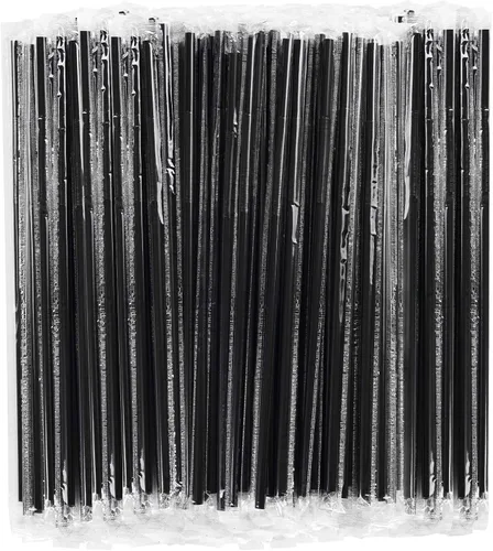 200 popotes desechables de plástico negro empaquetados individualmente (0.23 pulgadas de diámetro y 10.2 pulgadas de largo) (negro)