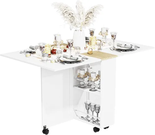 3imothrix Mesa de comedor plegable, mesa de comedor con cajón y almacenamiento y estantes, mesa de comedor que ahorra espacio con 6 ruedas, mesa