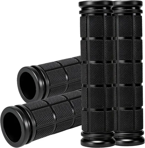 Reemplazo de empuñaduras de manillar de bicicleta: empuñaduras de manillar de bicicleta de goma diseñadas para reemplazar los agarres desgastados o viejos, adecuados para la mayoría de bicicletas y manillares estándar. Goma suave y duradera: hecha de goma flexible para una sensación cómoda y durabilidad confiable, ideal para montar a diario y uso casual. Fácil instalación deslizante, no necesita herramientas: limpia el manillar y gira los agarres a mano. Sin anillos de bloqueo, sin tornillos y no requiere herramientas. Si está apretado, use agua, agua jabonosa o agua tibia para ayudar a la instalación. Paquete de 4 unidades para dos bicicletas: incluye 4 empuñaduras (2 pares), suficiente para dos bicicletas o reemplazos adicionales. Gran valor para familias, bicicletas para niños y scooters. Amplia compatibilidad: se adapta a bicicletas infantiles, scooters, bicicletas BMX, bicicletas de montaña, bicicletas de crucero, bicicletas de equilibrio, triciclos y la mayoría de bicicletas estándar. También es compatible con algunas bicicletas plegables y bicicletas eléctricas con manillar estándar.