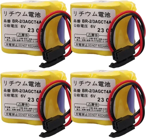 Modelo de batería: BR-2/3AGCT4A. Voltaje: 6.0V. Capacidad nominal de la batería: 4400MAH. Tamaño de la batería: 33MM*34MM*34MM. Propiedad de la batería: batería de litio desechable no recargable BR-2/3AGCT4A 6V 4400mAh Batería de repuesto para controles FANUC, computadora PLC Ge Fanuc serie 18T, A98L-0031-0025, CUSTOM-107, SHS749, ALIT0138, LIT0138 BR-2/3AGCT4A voltaje nominal 6V batería de litio, compuesta por 4 baterías de 3V, conexión serie 2 y 2, gran capacidad, vida útil de hasta 10 años más o menos, es equipo industrial, memoria de datos de computadora dedicada baterías de litio. Reemplazo para: A98L-0031-0025, A98L00310025, BR-2/3AGCT4A, BR2/3AGCT4A, A06B-6114-K504, A06B6114K504. Cantidad del paquete: batería del PLC 4pcs