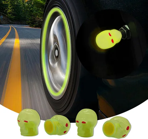 Material del producto: esta tapa luminosa para válvula de aire de neumático de automóvil está hecha de material ABS que emite luz y material de goma, estructura sólida, impermeable y protector solar, no se decolora ni deforma fácilmente, resistente al desgaste y a la corrosión, larga vida útil Diseño de forma: las tapas iluminadas resistentes a la corrosión para neumáticos utilizan el cráneo como forma de diseño de elemento, forma elegante, muestra tu personalidad única, deja que tu automóvil destaque, es tu primera opción para decorar tu automóvil Características de protección: esta tapa fluorescente para válvula de neumático de automóvil puede prevenir eficazmente la válvula de neumáticos de objetos extraños, para evitar el envejecimiento del óxido, forro de goma integrado para evitar fugas de neumáticos, mejorar la vida útil del neumático, aumentar la seguridad de conducción Efecto fluorescente: nuestras cubiertas de aire brillantes para neumáticos utilizan material fluorescente, que puede realizar una función automática de emisión de luz al conducir por la noche, formando un círculo de halo brillante a medida que las ruedas giran, a la moda y deslumbrante, y al mismo tiempo mejorar la visibilidad para garantizar la seguridad de conducción Fácil instalación: la instalación de la tapa del vástago de la válvula de neumático es muy simple, el uso interno del diseño de rosca giratoria, solo necesitas atornillar las tapas directamente en el neumático para completar la instalación, sin herramientas de instalación especiales, ahorrando tiempo y esfuerzo