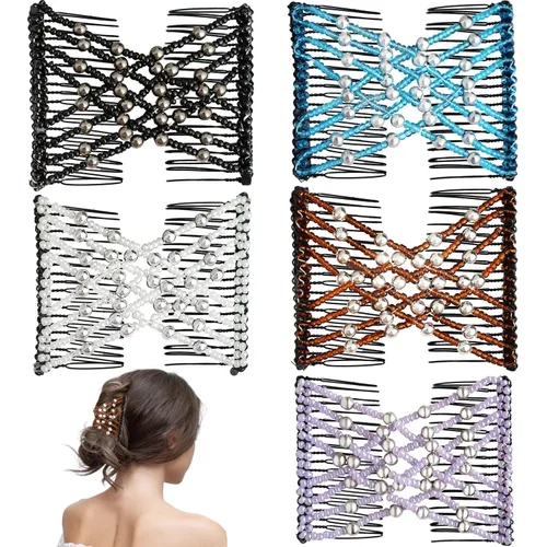 5 piezas de peine mágico elástico para el cabello, peine doble elástico con cuentas para mujeres y niñas, estilo de cabello vintage, accesorios para