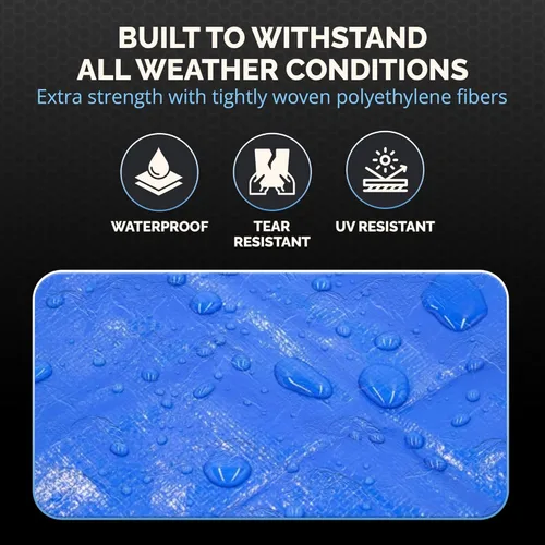 6x8 Lona impermeable azul – Lona resistente de 5 MIL de grosor para exteriores - Protección multiusos para acampar, tienda de campaña, techo, patio,