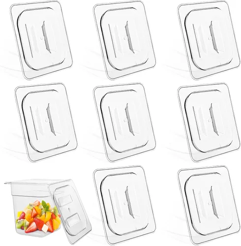 Juego de 8: con nuestro juego de 8 tapas de policarbonato de alta calidad, siempre tendrás muchas opciones para cubrir tu comida y mantenerla fresca. Perfectas para el uso diario en la cocina, nuestras tapas también son lo suficientemente duraderas como para manejar los rigores del uso comercial en hoteles y restaurantes. No te conformes con tapas endebles o inadecuadas: ¡actualízate a nuestra solución confiable y duradera hoy! Material de alta calidad: disfruta de un almacenamiento confiable de alimentos y comodidad de cobertura con nuestra tapa de policarbonato con asa. Hecho de material de policarbonato de alta calidad, ligero y portátil, es grueso y estable, por lo que resiste daños de impactos, arañazos y grietas. Son lo suficientemente resistentes como para proporcionarte un servicio duradero. Diseño con asa y esquinas redondeadas: estas tapas de contenedores de restaurante están diseñadas con esquinas redondeadas, que pueden protegerte de arañazos y cortes. Son ampliamente aplicables para almacenar alimentos a temperatura ambiente o alimentos fríos, como ensaladas, pasteles, pasteles, cocina diaria, frutas y verduras. Son perfectos para satisfacer tus necesidades diarias de cocina en la cocina o restaurante. Diseño transparente: estas tapas de mesa de vapor están hechas de material transparente y transparente, lo que le permite verificar sin esfuerzo el contenido sin tener que abrirlo. Esta característica es particularmente conveniente para identificar alimentos almacenados. Además, la tapa tiene un mango práctico, lo que te permite quitarla o reemplazarla fácilmente, lo que es particularmente útil para aquellos que usan guantes mientras sirven. Excelente rendimiento: esta funda para alimentos está hecha de material de policarbonato duradero, que puede resistir ácidos y aceites alimentarios, y es resistente a bajas temperaturas tan bajas como -104 ℉ y altas temperaturas de hasta 158 ℉, lo que permite una congelación rápida. Evite el uso de objetos duros para la limpieza. Puedes usar una toalla o esponja con detergente y agua o agua tibia para frotarla suavemente, haciendo que se vea como nueva. No lo utilices en un microondas u horno. Nota: No utilizar en microondas y horno. No apto para lavavajillas. No utilice objetos duros como lana de acero para limpiar.