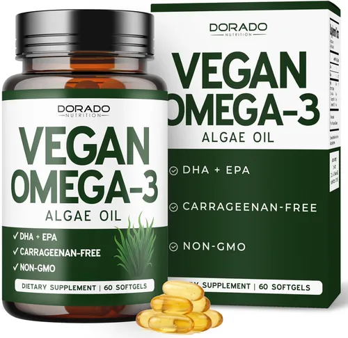 Suplemento vegano de omega 3: apoya la salud del corazón y el cerebro con ácidos grasos omega 3 esenciales para mujeres y hombres; promueve el bienestar general con un suplemento vegano omega 3 derivado del suplemento omega 3 de aceite de algas omega 3 FÓRMULA LIBRE DE PESCADO Y A BASE DE PLANTAS - Proporciona una fuente equilibrada de nutrientes vegetales omega 3; ideal para aquellos que buscan una alternativa vegana al aceite de pescado con los beneficios de un suplemento de omega 3 de algas DHA Y EPA DE ALGAS - Ofrece una opción de omega 3 vegetariana libre de pescado; enriquecida con omega-3 de origen de algas para aquellos que buscan un suplemento de aceite de algas limpio Fabricado en los Estados Unidos a partir de ingredientes de origen mundial: Dorado Nutrition es una empresa 100% estadounidense que crea empleos y mejores futuros para todos nuestros empleados y partes interesadas. ¡Todos nuestros suplementos están fabricados en los Estados Unidos! Nuestras cápsulas de suplemento de Omega 3 vegano están fabricadas en los EE. UU. y probadas por seguridad para metales pesados y microbios en una instalación de última generación. Fabricadas en una instalación certificada GMP: nuestras cápsulas veganas de suplemento Omega 3 cumplen con GMP para garantizar una calidad premium. Nuestros suplementos siempre están libres de aditivos o conservantes innecesarios y son probados por terceros de forma independiente.