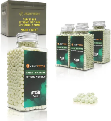 【Mayor visibilidad】Color: Verde, emite un brillo intenso cuando se usa con una unidad trazadora compatible de ACETECH, permitiéndote rastrear disparos con precisión durante juegos nocturnos o en interiores. 【Construcción de alta calidad】Tamaño: 6 mm, 0,20 g, Elaboradas con un acabado pulido y una tolerancia precisa de 5,95 mm ± 0,01 mm, estas BBs garantizan una alimentación suave y trayectorias de vuelo consistentes, mejorando el rendimiento general de tiro. 【Compatibilidad universal】Apto para uso en varios tipos de airsoft, incluyendo AEG, GBB, de resorte, gas y CO2, proporcionando versatilidad en diferentes escenarios de juego. 【Caja de inspiración militar】: 9600 rondas, empaquetadas en una caja de cartón duradera de grado coleccionable diseñada según una clásica caja de munición militar, combinando estética táctica con practicidad ecológica, perfecta para regalar o almacenamiento organizado de equipo. 【Recomendaciones de uso】Para mantener un rendimiento óptimo y proteger tu equipo, evita reutilizar las BBs después del impacto, ya que esto puede causar daños internos a tu pistola de airsoft.