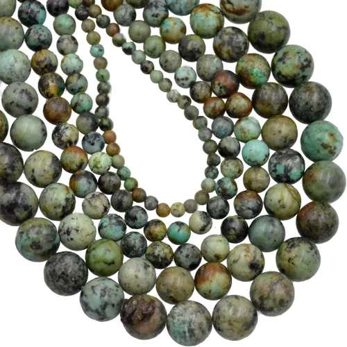 Turquesa africana. La turquesa africana es una piedra que entrega una clave para una nueva vida con sus ofrendas. Esta es una piedra que despierta al alma a su propósito previsto, alentando al ser a causar una impresión positiva mientras gana y da sabiduría positiva. Material y forma: cuentas de piedras semipreciosas genuinas esmeriladas y redondas de grado A Tamaño y cantidad: 0.157"/4 mm (aproximadamente 93 ~ 100 cuentas en cada hebra), 0.236"/6 mm (aproximadamente 62 ~ 67 cuentas cada hebra), 0.315"/8 mm (aproximadamente 46 ~ 50 cuentas cada hebra), 0.394"/10 mm (aproximadamente 37 ~ 40 cuentas cada hebra). El tamaño del agujero en estas piedras preciosas es de aproximadamente 0.92 mm a 1.03 mm dependiendo del tamaño de las cuentas. La mayoría de las cuentas redondas de un tamaño entre 4 mm y 8 mm tiene un orificio de alrededor de 0,92 mm y las de 10 mm y más grandes tienen un orificio de alrededor de 1,03 mm. Política de devolución: Tenemos una garantía de satisfacción de 30 días y si no está completamente satisfecho con el producto, con gusto permitiremos cualquier devolución sin hacer preguntas. Si tienes alguna pregunta, no dudes en hacerla y te responderemos de manera rápida.