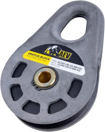 AEV Snatch Block Tamaño medio/Completo - Resistencia a la rotura: 52,000 libras El bloque de arranque se puede utilizar tanto con un cable de acero