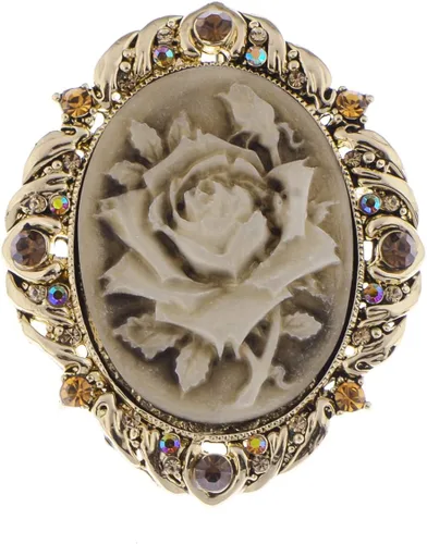 Alilang Broche de pasador de camafeo con flores de cristal rosa antiguo inspirado en la vendimia