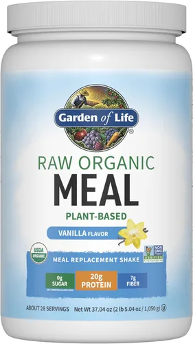 Garden of Life Los batidos de reemplazo de comidas orgánicas crudas proporcionan un excelente batido de reemplazo de comidas de proteínas que es nutritivo y delicioso. Este polvo de proteína todo en uno bajo en calorías ofrece 0.71 oz de batidos de alto contenido proteico por porción, hechos de ingredientes orgánicos en polvo de proteína de guisante. Ideal para cualquier momento del día, te deja sintiéndote lleno y satisfecho, con 0.27 onzas de fibra y solo 150 calorías por porción. Di adiós a los batidos calcáreos y hola al delicioso sabor francamente con esta variante de proteína en polvo de vainilla. Se mezcla sin esfuerzo con agua, se mezcla perfectamente en batidos e incluso mejora los productos horneados. Los batidos de reemplazo de comidas orgánicas crudas están hechos para proporcionar una gran textura y mezclabilidad. Están repletos de guisantes orgánicos, granos germinados, semillas y legumbres, junto con vitaminas y minerales esenciales de alimentos integrales, por lo que es una opción excepcional como proteína en polvo para mujeres u hombres. Este polvo de proteína para hombres y mujeres se produce a bajas temperaturas para preservar la integridad nutricional, diseñado para que aproveches al máximo cada cucharada. Incluye enzimas digestivas como lipasa, lactasa y papaína, junto con probióticos vivos para la digestión y absorción adecuada. La comida orgánica cruda es una gran opción para aquellos que buscan bebidas de reemplazo de comidas y proteínas altamente nutritivas. Los adultos pueden mezclar 1 cucharada con 8 onzas de agua o leche vegetal, mientras que los padres deben consultar con el pediatra o nutricionista de su hijo para conocer las necesidades adicionales de proteínas. Saborea la nutrición equilibrada y la comodidad de nuestra opción vegana de proteína en polvo como parte de tu rutina diaria. †Estas declaraciones no han sido evaluadas por la Administración de Alimentos y Medicamentos. Este producto no está destinado a diagnosticar, tratar, curar o prevenir ninguna enfermedad.