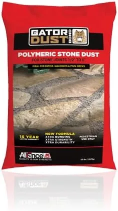 { Resultados sin preocupaciones} La arena polimérica de polvo de Gator bloquea en juntas de adoquín de 1/2 pulgada a 6 pulgadas de ancho. Esta avanzada tecnología de bloqueo mantiene tus proyectos de fundición húmeda o piedra natural con un aspecto emmaculado sin importar las condiciones climáticas { Rápido a la lluvia en 24 horas} Hazlo con las mayores capacidades de unión conjunta del polvo de caimán y requiere un tiempo de lluvia más largo. ¡Después de 24 horas, tu proyecto está listo para comenzar! { Xtra Bonding } El polvo de Gator es una solución Xtra fuerte para espacios amplios que está diseñada para uso peatonal solamente y no está hecho para áreas que involucran vehículos. { Aplicación } Fácil de instalar. Las piedras naturales y las articulaciones deben estar completamente secas antes de comenzar. Simplemente barre, apisona, riégala y listo. Los productos funcionan por encima de 59 grados. Cubre hasta 30 pies cuadrados por bolsa dependiendo del ancho de la articulación. { Consejos para contratistas incluidos} A veces se necesitan algunos consejos útiles. Es por eso que incluimos algunos consejos y trucos probados y verdaderos de nuestros clientes profesionales de instalación de patios para ayudarlo a instalar sin problemas su arena polimérica.