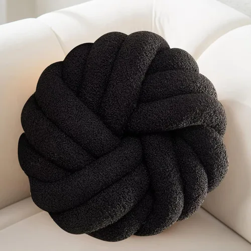 Almohada redonda negra suave con nudo, almohada de felpa con nudo para sofá, almohadas decorativas anudadas para cama, sala de estar, cojines de suelo, 14 pulgadas