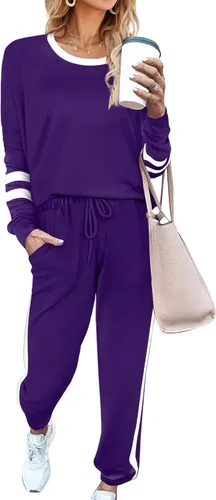 Aloodor conjunto deportivo de 2 piezas para mujer, con sudadera con cuello redondo, sin botones