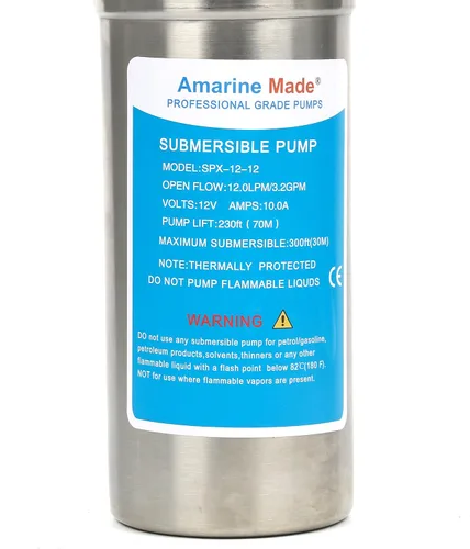Buena perfoemance: Con un rendimiento impresionante, esta bomba cuenta con un caudal de 12LPM/3.2GPM, una profundidad máxima de inmersión de 100 pies/30M y funciona con 12 V y 10.0 A de potencia. Su elevación máxima de la bomba alcanza los 70M-100M. Diseño impermeable: Con una línea de cable de alimentación impermeable para evitar daños por humedad, esta bomba es ideal para una amplia gama de aplicaciones como riego, suministro de agua para ganado, aireación de estanques y suministro de agua de pozos profundos o altos sin electricidad. Bomba de agua de pozo profundo: Disfrute de la comodidad y confiabilidad del suministro remoto de agua con esta solución eficiente, diseñada por expertos para su uso con paneles solares y sistemas de baterías de 12V. Fácil de instalar: conecte esta bomba sin esfuerzo a sus paneles solares o generadores eólicos existentes y elija instalar con o sin componentes adicionales como un controlador de voltaje. Tenga en cuenta que está térmicamente protegido y no está diseñado para su uso con líquidos inflamables. Durabilidad: Benefíciese del suministro de agua confiable y duradero con nuestra resistente bomba sumergible solar de acero inoxidable, diseñada para soportar la prueba del tiempo.