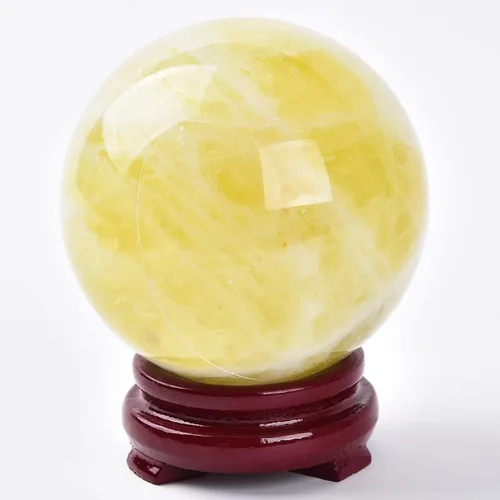 Bola de cuarzo de limón Bola de piedra de cristal de cuarzo natural con base de madera