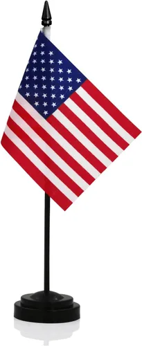 ANLEY Juego de banderas de escritorio de lujo de EE. UU., bandera de escritorio estadounidense en miniatura de 6 x 4 pulgadas con poste sólido de 12