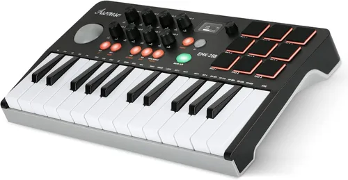 Asmuse EMK-25 Teclado MIDI portátil, controlador de teclado MIDI Bluetooth con 8 almohadillas retroiluminadas, 8 perillas para producción de música