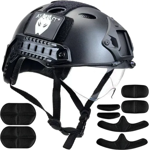 ATAIRSOFT PJ Type - Casco táctico multifuncional rápido con visera, versión de gafas