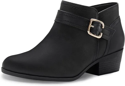 Athlefit Botines gruesos de tacón bajo para mujer, botines clásicos con punta puntiaguda y cremallera lateral