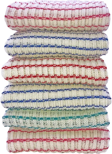 Paños multiusos: el paquete de 6 paños de cocina texturizados de B53 son ideales para una variedad de tareas en el hogar; también se pueden utilizar para pulir superficies, acampar, pescar, cazar, limpiar tu automóvil, camión, barco o cámper. Material duradero: hecho de mezcla de poliéster y algodón de punto, los paños de cocina B53 son absorbentes y duraderos, lo que los hace ideales para lavar platos, quitar el polvo de los muebles o limpiar encimeras. Aspecto clásico del suroeste: estos paños de cocina sin duda te recordarán los días de tu infancia, gracias a su color blanco roto combinado con rayas de colores que se parecen a las que tu abuela y mamá usaban en su día. Lavable a máquina: disponibles en una variedad de colores, estos paños de cocina son lavables a máquina para mayor comodidad. Para obtener los mejores resultados, lava los paños antes de usar. Fabricado en los Estados Unidos: estas toallas para lavar platos están fabricadas con orgullo por artesanos en Tennessee, por lo que cada compra ayuda a apoyar a las familias estadounidenses.