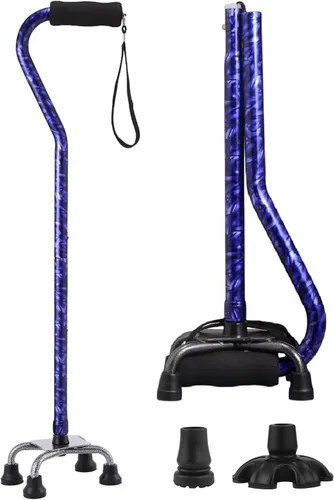 YOKABOZE - Bastón para caminar, tu mejor compañero para la confianza y la estabilidad Bienvenido a un nuevo capítulo de vida segura e independiente. El YOKABOZE Folding Quad Cane está meticulosamente diseñado para aquellos que se niegan a comprometer la seguridad, la comodidad y el estilo. Características principales: Estabilidad inigualable: base de 4 puntas con puntas de goma antideslizantes para una tracción superior en cualquier superficie. Diseño autónomo para mayor seguridad y comodidad. Comodidad superior: mango ergonómico con agarre de espuma suave que reduce la fatiga de la mano y la muñeca, asegurando una sujeción segura. Máxima comodidad: ajustable de 30" a 37" (8 niveles) y se pliega en segundos para un fácil almacenamiento y viaje. Construcción premium: hecho de aleación de aluminio ligera pero resistente de grado aeronáutico para un soporte diario confiable. Diseño elegante: disponible en múltiples patrones (floral, mármol, pavo real azul) para adaptarse tanto a los estilos de mujeres como para hombres. El regalo perfecto: Un regalo pensado y práctico para padres ancianos, amigos o cualquier persona que se recupere de una cirugía que necesite un apoyo confiable para el equilibrio. Tu satisfacción está garantizada: Confiamos en la calidad de nuestro producto. Si tienes alguna pregunta, nuestro equipo de servicio al cliente está aquí para ayudarte. ¡Elige YOKABOZE hoy y muévete por la vida con confianza e independencia!