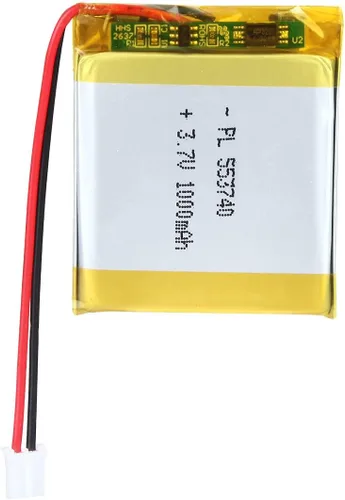 ADVERTENCIA: El tipo de conectores de baterías son todos JST PH2.0MM . —¡LOS CONECTORES NO SON UNIVERSALES! ! !— Asegúrate de que el tipo de conector, la polaridad y el tamaño de la batería coincidan con tu dispositivo antes de comprar. —Si la polaridad del conector no coincide con la del dispositivo, dañará el dispositivo o la batería nueva Voltaje: 3.7 voltios; Capacidad: 1000 mAh; Voltaje de carga máxima/corriente: 4.25 V/500 mAh; Material: polímero de litio. Tipo de conector: PH 0.079 in; Tamaño: 5,5 x 40 x 40 mm / 0,22 "x 1,57" x 1,57" (T* W* L); Longitud del cable: 5 cm / 2 "; Peso neto: 0.60 oz. NOTA: ¡La batería de litio de 3.7V 1000mAh 553740 es batería sin alimentación! ! ! No se puede utilizar para dispositivos de energía que requieren alta corriente como UAV, mini helicóptero RC, drones pequeños RC, aviones modelo, juguetes eléctricos, herramientas eléctricas y otros. Aplicación: adecuado para MP3/MP4, auriculares inalámbricos Bluetooth, GPS, monitor de bebé, game boy, skybell, reloj inteligente, unidades de monitoreo, máquina POS, cámara de instrumentos, alimentación móvil, altavoz Bluetooth, gafas de realidad virtual, dispositivos de belleza, rastreador de mascotas, timbre de video anillo, etc.