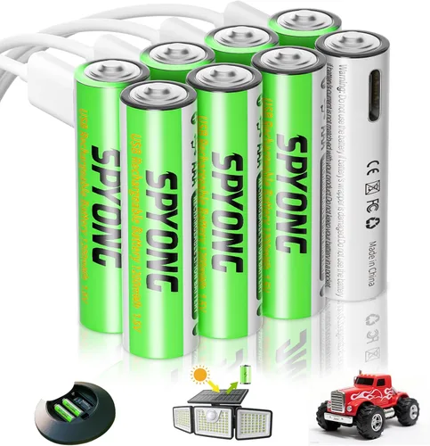 Capacidad de 1200 mWh y voltaje estable de 1.5 V: cada batería recargable AAA ofrece 1200 mWh de potencia para un uso diario prolongado, manteniendo estable 1.5 V de lleno a vacío. Alimenta de manera confiable dispositivos pequeños como controles remotos, ratones inalámbricos o mini cámaras sin apagados repentinos, mejor que las baterías AAA normales. Cable USB-C 4 en 1 + carga rápida de 40 minutos: incluye un cable de carga USB-C multipuerto, lo que permite la carga simultánea de 4 baterías AAA, no necesita cargador de batería recargable adicional. Obtiene un 20% de potencia en 5 minutos para uso urgente (por ejemplo, control remoto muerto) y se carga completamente en 40 minutos, más rápido que los recargables AAA tradicionales. Carga multiescenario: USB y solar: compatible con fuentes de alimentación USB comunes (cargadores de teléfono, bancos de energía, puertos USB de automóvil) y funciona con equipos alimentados por energía solar como luces solares. Cargue baterías AAA a través de USB o energía solar, adecuadas para el hogar, la oficina o el uso al aire libre (por ejemplo, configuraciones solares de campamento). 【Más de 1500 ciclos: ahorro ecológico y duradero】Soporta más de 1500 ciclos de carga y descarga, superando las baterías AAA alcalinas desechables. Reduce las compras frecuentes de baterías, ahorrando costos y minimizando el desperdicio ambiental para un uso sostenible a largo plazo. 【100% a prueba de fugas + amplio rango de temperatura】Equipado con protección de seguridad de 4 capas (sobretemperatura, cortocircuito, sobrecarga, sobrevoltaje) y diseño 100% a prueba de fugas. Funciona de forma estable a -4.0 °F a 140.0 °F, perfecto para almacenamiento a baja temperatura o aplicaciones de luz solar al aire libre. Recordatorio: esta batería AAA recargable USB-C necesita un cargador solar o dispositivo solar con un voltaje de entrada de ≥1.2 V para carga solar; el uso de dispositivos con menor voltaje puede reducir el rendimiento de carga. No mezclar con baterías no recargables para evitar el mal funcionamiento del dispositivo.