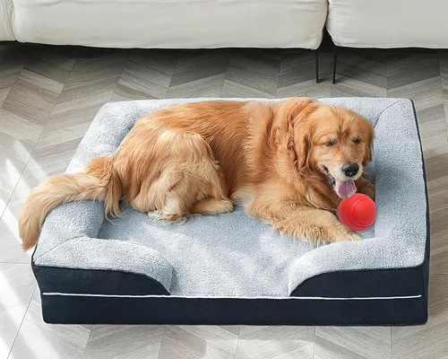Orthopedic Dog Bed, Dog Beds for Large Dogs Pet Bed Waterproof Dog Bed with Washable Removable Cover, Rectangle Dog Bed with Sides Bolster Dog Bed