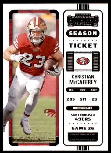 Billete de temporada de Panini Contenders 2022 # 15 Christian McCaffrey San Francisco 49ers NFL