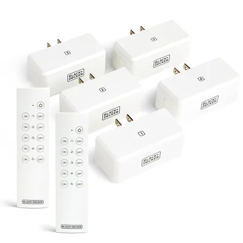 BLACK+DECKER Toma de control remoto inalámbrico, paquete de 5 tomas, 2 controles remotos - Interruptores de luz premium