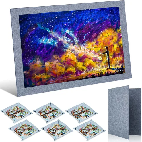 Características: El diseño plegable de la alfombrilla de rompecabezas permite un fácil almacenamiento en armarios, debajo de camas o en espacios pequeños. Di adiós al desorden y mantén tus rompecabezas perfectamente escondidos cuando no estén en uso. Además de rompecabezas, este espacioso tablero de rompecabezas de fieltro también es ideal para otros proyectos de arte como dibujar, pintar o hacer manualidades. Proporciona una superficie resistente y cómoda para tus esfuerzos creativos. Especificaciones: Color principal: gris oscuro Material principal: fieltro Tamaño: Tablero de rompecabezas: aprox. 45.7 x 30.7 pulgadas antes de plegar, 22.8 x 30.7 pulgadas después de plegar. Bandejas clasificadoras de piezas de rompecabezas: aprox. 9.84 x 9.84 pulgadas / 9.8 x 9.8 in El paquete incluye: 1 tablero de rompecabezas. 6 bandejas de clasificación de rompecabezas apilables. Notas cálidas: Puede haber una ligera desviación debido a la medición manual. Puede haber ligeras diferencias de color debido a los diferentes monitores.