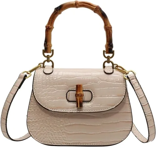 Bolso de mano de cuero artificial de bambú con asa superior para mujer, elegante bolso de noche, regalo para mujer, hecho a mano