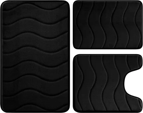 BYSURE Juego de 3 alfombras de baño de espuma viscoelástica, antideslizantes, extra absorbentes, peludas, suaves y secas para baño, juego de