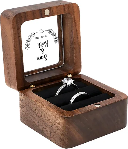 ♥Caja portadora de anillos con doble ranura con diferentes formas, puede contener cualquier anillo. ♥Esta caja de anillo de boda está hecha de material de madera rústica de alta calidad, un gran regalo de recuerdo para la celebración. ♥ Color variante: negro/blanco/verde/marrón, grabado cualquier nombre, letra o fecha en él, un regalo perfecto para llevar anillos. ♥ Esta caja portadora de anillos puede contener el anillo de amor de tu esposa, marido, novia, novio, cuando lo abras ligeramente, comienza una increíble historia de amor. ♥ El soporte de madera para anillos de compromiso viene con una exquisita caja de regalo, 100% garantía de calidad, cada pieza será revisada cuidadosamente antes de enviarla.