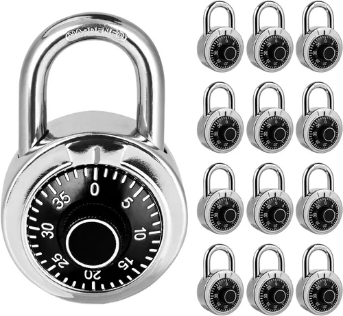 Candado de combinación de 12 unidades, candado de combinación de esfera fija con diferentes combinaciones, 2 pulgadas de ancho. Placa giratoria