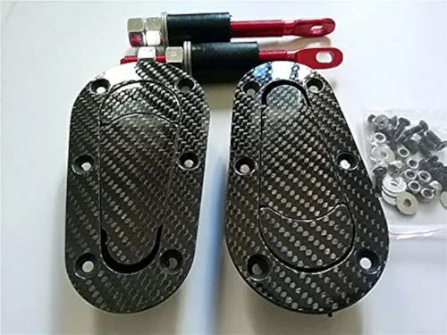 Contenido: 1 kit de montaje con cierre de pestillo Material: fibra de carbono Mejora el aspecto personalizado de carreras Rápido y flexible para bloquear y desbloquear Viene con los accesorios de montaje necesarios