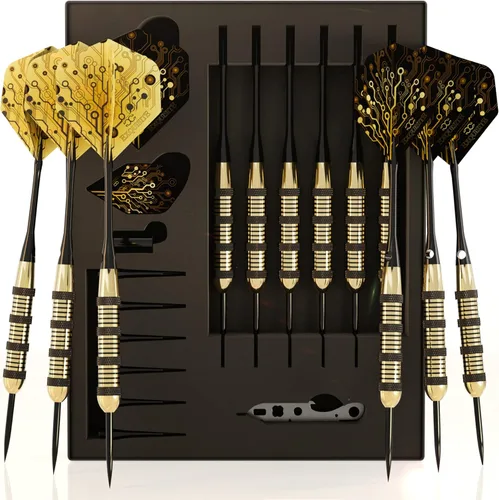 ¡LA COMBINACIÓN PERFECTA DE BARRIL, EJECUTIVO Y VUELO puede llevar mucho tiempo descubrirla! El juego de dardos CC-EXQUISITE te da la posibilidad de elegir y experimentar; puedes probar diferentes combinaciones de barriles, vuelos y longitudes de ejes para DESCUBRIR LA CONFIGURACIÓN CORRECTA como un profesional. 🎯 SET DE DARDOS DE PUNTA DE ACERO SUPERIOR incluye: 6 x barriles de latón irrompibles de alta calidad de 20 g + 12 ejes de aluminio extra duraderos en dos longitudes (6 x 35 mm/6 x 48 mm) + 12 juntas tóricas para evitar que se aflojen + 12 vuelos en dos formas y diseños diferentes (6 estándar/6 delgados) + herramienta multiusos para dardos + sacapuntas de dardos y estuche delgado. Múltiples opciones de configuración. La experimentación te ayudará a descubrir la configuración de dardos perfecta para tu estilo. Al crear su Configuración de Accesorios Personalizados, podrá encontrar la mejor combinación posible para adaptarse a su propio estilo y habilidad. Esencial para desarrollar y mejorar tus habilidades La configuración correcta es algo muy personal que encontrarás después de experimentar con tus dardos. ¡Prueba diferentes combinaciones de accesorios para tu juego de dardos para ver cuál funciona mejor para ti, encuentra una configuración con la que te sientas cómodo y tus amigos presumirán de tus habilidades de lanzamiento! Nuestros dardos profesionales están hechos para durar. Diseñado para ser la elección de futuros campeones, nuestro paquete te ofrece lo que muchos jugadores profesionales ya han descubierto: ¡la configuración de dardos personalizada!
