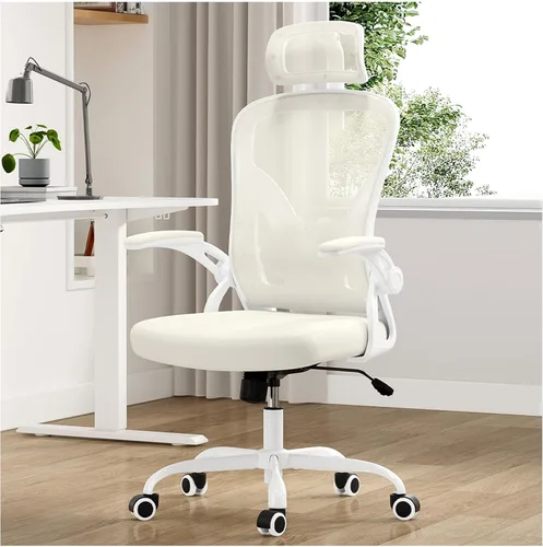 • ERGONOMIC OFFICE CHAIR - Are you struggling with your office chair isn't comfortable? Congratulation, you find the most comfortable home office desk chair. This ergonomic office chair use an unique backrest to fit the natural ergonomic curve. Also the ergonomic mesh office chair has a adjustable lumbar support which can help you fix your sit position HEAD & LUMBAR SUPPORT - Farini desk chair is designed with a lumbar support system that adjusts up to 2 inches vertically, perfectly contouring to your waist and back curves to protect spinal health. The headrest offers 5.1 inches of height adjustment and 30° rotation, allowing you to freely switch postures and relax your neck at any time SAVING SPACE - The home mesh desk chair can save space for you, because the armrests of desk office chair could be flipped up to 90 degree, and then you can put your mesh office chair under the desk when it's not in used. So our ergonomic desk chair could be used in anywhere in your bedroom, study room and gaming room or office COMFY EXPERIENCE - Our ergonomic office chair has the elastic sponge cushion ,so it can softly support the hips for comfortable sitting to make sure you have a comfy experience, and the backrest of home desk chair is made by durable breathable mesh material. When you sit on the home office chair for long time, you do not feel sultry.Our computer desk chair can 90° to 120° rocking style, which could help you relax at anytime SAFE & ASSEMBLE - Don't worry about the safety of this home office desk chair. Our comfortable office chair is made of high-quality nylon and metal,also it is stable which can withstand 350 IBS . According to the instructions, installation can be completed in only about 15 minutes