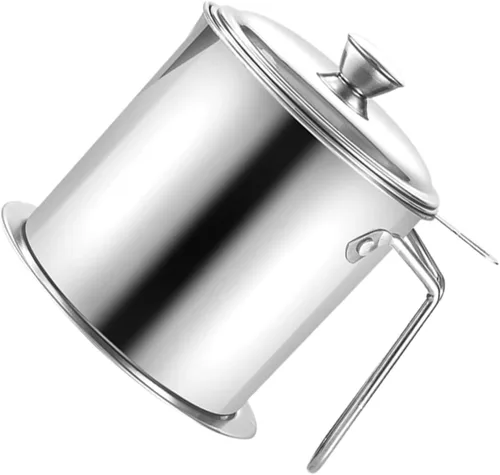 Contenedor de grasa de acero: fabricado con material de acero inoxidable de primera calidad, olla coladora para su uso. Colador de aceite-- La tapa de sellado en la parte superior puede entrar en la olla del colador. Almacenamiento de aceite puede - mango portátil, fácil de llevar. superficie lisa, con lastimar las manos. Pulverizador de aceite para cocinar, adecuado para usar en la cocina de tu casa y en restaurantes. Recipiente de grasa con colador: el material de acero inoxidable hace que el recipiente de aceite y .