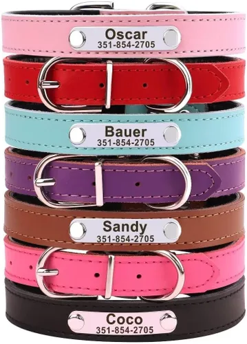 • Cómodo y ligero: Hecho de piel sintética de doble capa con acolchado suave para una combinación perfecta de comodidad y suficiente durabilidad. Protege el cuello de tu perro de las irritaciones. Muestra exquisita artesanía con atención a cada detalle Ayude a su perro a llegar a casa de forma segura: puede grabar el nombre y el número de teléfono de la mascota o cualquier otra información importante que desee en la placa de identificación dorada, clara de leer y reducir el ruido que las etiquetas de tintineo. Con este collar de perro grabado, puedes estar seguro de que tu mascota nunca se perderá Diseños funcionales para su elección: 7 colores con diseño de diamantes y juego de correa! Si estás buscando un collar de cuero para perros que combine perfectamente incluso con la correa de cuero más elegante, estás en el lugar correcto. Además de ser elegante y a la moda para caminar diariamente, correr o actividades al aire libre, también es una opción perfecta como regalo de festival para cualquier niño y niña en tu vida Duradero hecho para durar mucho tiempo: hebilla de aleación mejorada y herrajes de metal son resistentes al desgaste y no se oxidan, se mantienen más seguros y no se estiran fácilmente. El anillo en D de metal es funcional para colgar la correa o la etiqueta de identificación, mientras que el diseño de ojales es conveniente de ajustar para un uso cómodo Selecciona el collar adecuado para mascotas: collar de perro XS (cuello de 7 a 10 pulgadas), ideal para cachorros extra pequeños y niñas con peso recomendado de 4.5 a 10 libras, como gatos gatitos, Yorkshire, chihuahua, papillón, pinscher, etc. Toma una medida del cuello del perro y deja 2 dedos antes de realizar el pedido