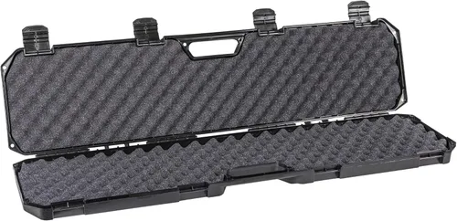 MEDIDAS – Dimensiones exteriores: 42.03" x 10.50" x 3.81" | Dimensiones interiores: 41.40" x 8.97" x 3.25" Forro de espuma para mayor protección: ¿carretera llena de baches? Protege tu arma contra golpes y sacudidas con esta funda de pistola larga de buen precio; La espuma de tipo huevera, en la parte superior e inferior, proporciona un acolchado absorbente de impactos ESTUCHE INICIAL ECONÓMICO: protege tu arma sin romper tu presupuesto; este estuche rígido y ligero para armas ofrece resistencia al agua a un precio económico; mantiene tu arma de fuego segura y seca en la mayoría de las condiciones Compatible con miras: nuestro estuche compacto y liviano es lo suficientemente ancho para la mayoría de los rifles y escopetas de mira única, lo que lo convierte en el estuche de transporte al aire libre o caja de almacenamiento interior perfecto para tu equipo táctico o de caza ARTESANIA PURAMENTE AMERICANA - hecho en Texas, EE. UU., este estuche rígido asequible para armas incluye muchas características de calidad, desde pies moldeados (para colocar el estuche en posición vertical horizontalmente) hasta bisagras de acero (para un uso duradero)