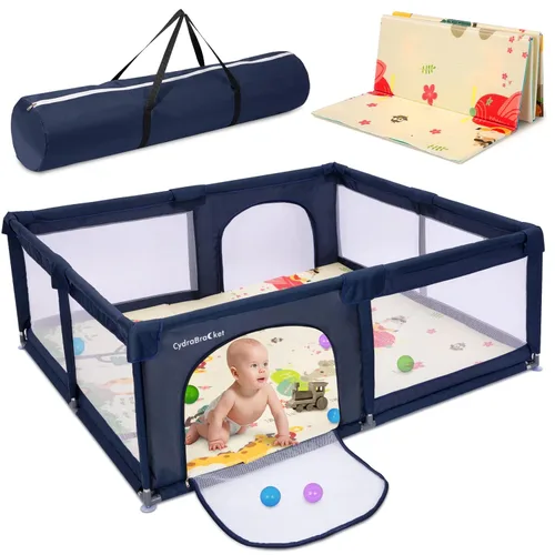 • Gran área de juego: con un tamaño grande de 70.9 x 59.1 x 26.0 in, nuestro corralito para bebés permite que 2 adultos y 1 niño se tumban, proporcionando un montón de espacio para que los bebés gateen, caminen o jueguen con sus juguetes, amigos o mascotas. El diseño científico de altura para la valla también es lo suficientemente seguro para que el bebé se pare y camine. Parque extra grande para que los bebés y niños pequeños exploren la diversión. Centro de actividades seguro: tela Oxford 300D gruesa mejorada, broches de seguridad en tubo de acero resistente, 4 ventosas de seguridad en las esquinas y ventosas antideslizantes en la parte inferior, todos los diseños anteriores pueden proteger bien a tu bebé de daños en todos los aspectos. También incluimos espuma anticolisión a la tela del marco superior, lo que hace que el parque sea más seguro. Exclusivo diseño mejorado: la cremallera externa única puede evitar que los bebés gateen o se escapen, pero es fácil para los padres abrirla desde el exterior. Los paneles laterales son de una malla transpirable suave y visible, lo que permite a los bebés actuar en un rango visible, interactuar en cualquier momento para dar a tu bebé una sensación de seguridad. La bonita bolsa de almacenamiento también es conveniente para que los padres pongan pequeños juguetes o pañales de bebé en el interior. Tapete de juego plegable y reversible: equipado con una alfombra de juego del mismo tamaño, bien combinado con el parque de tu bebé. Diseño de doble cara con diferentes colores y patrones que te sorprenden y aportan a los bebés más sensación de frescura para mantener su curiosidad. Haz que el tiempo de juego sea seguro y divertido con nuestra alfombrilla de juego suave y antideslizante en este parque infantil. El parque infantil y el ayudante de los padres: el juego CydraBracket permite que tu hijo disfrute del tiempo de juego en todas partes, ya sea en casa o en el patio, proporcionando un parque de juegos privado para tu hijo. Mientras tanto, mamá y papá también pueden liberar sus manos para hacer sus propias cosas mientras cuidan de su bebé. Este parque de juegos es fácil de montar y desmontar y se puede utilizar en interiores o exteriores.