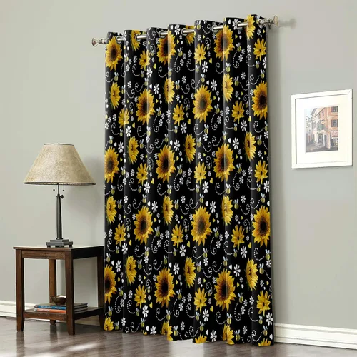 Cortina opaca para dormitorio, girasoles abejas negras, con aislamiento térmico, reducción de ruido, cortinas opacas para sala de estar, cocina