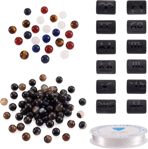 El paquete incluye: 24 cuentas redondas de piedras preciosas (6 piezas x 4 estilos), 200 cuentas de ónix negro, 12 cuentas de vidrio (1 pieza x 12 estilos) y 1 rollo de hilo elástico. Tamaño: piedras preciosas: aproximadamente 0.315 in, agujero: 0.039 in; ónix negro- aproximadamente 0.315 in, agujero: 0.047 in; cuentas de vidrio-- aproximadamente 13,5 ~ 0.551 x 0.394 in, agujero: 0.059 in; cuerda: aproximadamente 0.031 in, aproximadamente 8,2 yardas (24.6 ft) de largo. Constelación Tema: Las cuentas de vidrio están impresas con patrones de constelación. Puedes utilizarlas para hacer joyas con temática de constelación como regalo de cumpleaños para tu familia o amigos. Fácil de usar: viene con 1 rollo de cuerda elástica, no necesitas comprar el cordón adicional para hacer joyas, conveniente para tu uso. Con el juego de cuentas de piedra mixta, se puede formar en varias combinaciones, satisface tus necesidades de bricolaje. Amplios usos: son adecuados para pulseras, collares, aretes, tobilleras, llaveros, ropa y decoraciones de bolsos. Puedes hacer varias pulseras iguales o diferentes artesanías para tu familia y amigos. Serán proyectos de joyería ideales de los estilos en parejas, amistad y familia.