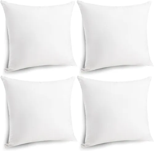 Detalles del producto: estos rellenos de almohada de mezcla de algodón están rellenos de fibra virgen siliconizada 100% poliéster. Cada paquete contiene cuatro cojines de tamaño 20 x 20 pulgadas. Viene empaquetado al vacío compacto para un fácil manejo y envío. Una vez que se abre el paquete, se esponjará hasta su tamaño original. Material y relleno: estos rellenos de almohada son lo suficientemente suaves como para ser cómodos pero conservan su forma. El relleno virgen siliconado de poliéster asegurará que tu almohada no parezca hueca. La tela de mezcla de algodón utilizada es transpirable y duradera. Múltiples usos: estos rellenos de almohada son más que solo para decoración. Además de usarlos en tu sofá y cama, también puedes colocarlos en tu asiento de automóvil o silla de oficina para apoyo lumbar. Son tan cómodos que puedes usarlos en casi cualquier lugar. Puedes llenar tu elección de fundas de almohada con estas almohadas suaves y afelpadas para crear tu propio estilo personalizado. TODO LO QUE NECESITAN ES UNA MÁQUINA: Para lavar, ajuste la temperatura del agua por debajo de 40 grados y asegúrese de mantener el calor de su secadora baja. De esta manera, tus almohadas permanecerán iguales incluso después de muchos lavados. Ofrecemos una garantía de 90 días donde ofrecemos cambios, reemplazos o devoluciones gratuitos. Un juego de regalo perfecto: si estás buscando una inauguración de la casa, boda o bienvenida al regalo del vecindario, entonces te tenemos cubierto. Estas almohadas son decorativas, útiles, presentables y cómodas para que sepas que serían un regalo considerado.