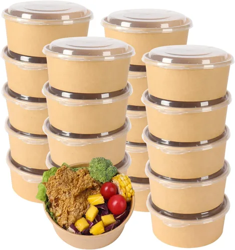 Cuencos de papel Kraft de 25 onzas, paquete de 50 cuencos y 50 tapas. Incluido en la caja: Cuencos de papel kraft de 17 onzas, paquete de 50 cuencos y 50 tapas. Los cuencos están hechos con papel Kraft. Cuencos de papel kraft: Diseño antipresión, textura perfecta, puede mejorar tu calidad de vida. El uso de papel kraft engrosado puede hacer que el cuenco tenga más peso. Nuestro papel kraft es inodoro, se puede utilizar con confianza. Nuestras tapas de grado alimenticio, fuertes y altamente transparentes, puedes ver el estado de los alimentos a través de la tapa. Múltiples escenarios de uso: Cuencos gruesos, a prueba de agua y aceite, prometemos 72 horas sin fugas de agua. Perfecto para uso diario, fiesta familiar, picnic al aire libre, viajes. También puede empacar alimentos, es un buen recipiente de alimentos para llevar, y perfecto para refrigerador fresco. Tamaño perfecto: Adecuado para la dieta diaria, como ensalada, bistec, espagueti. Resistente y duradero, se utiliza bien de muchas maneras, como fiestas, barbacoas, campamentos, aperitivos nocturnos. Apto para microondas y congelador: Nuestros cuencos son seguros para alimentos fríos y calientes. Son seguros para ser puestos en el microondas y el congelador. Los tazones de preparación de comidas avanzadas, el control de porciones de la dieta, las comidas nutritivas saludables y las comidas para llevar son súper convenientes.